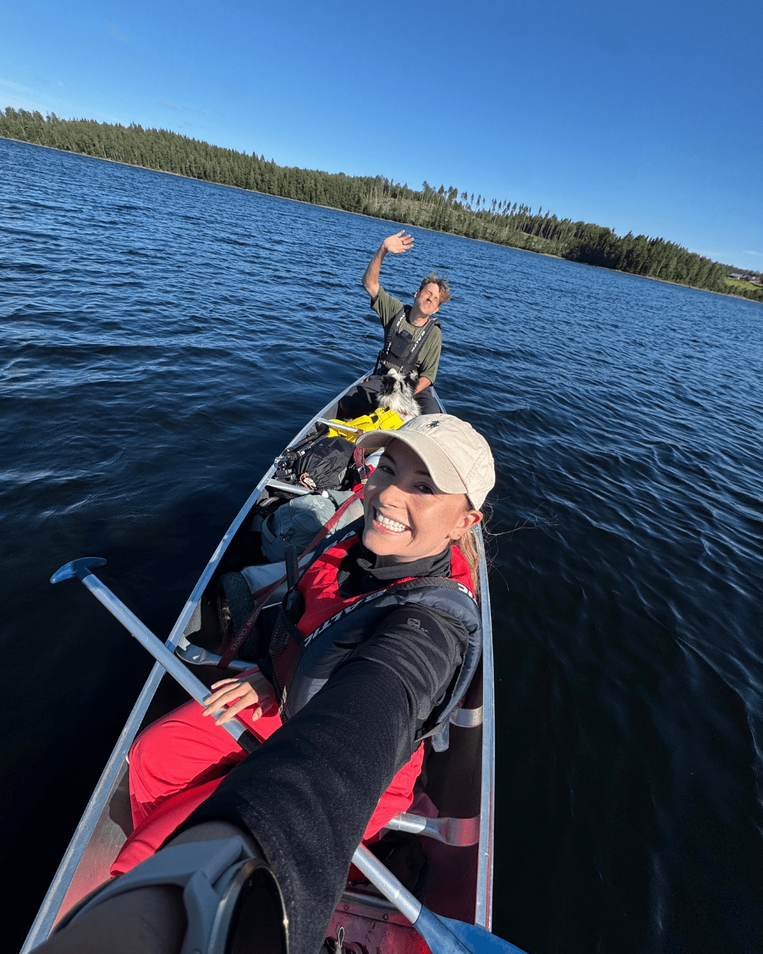 This year, we traded our van for a canoe and spent three days paddling through Värmland with Travelbase. We were a bit nervous because we’d never done a canoe expedition before, but the cosy basecamp, warm coffee, and cinnamon buns eased us right into it.